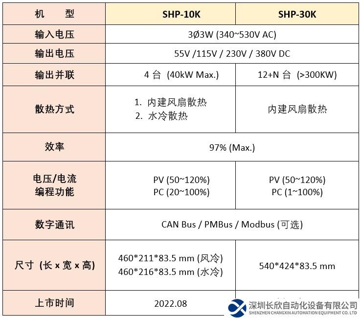 SHP-30K 系列延续之前 SHP-10K 系列,除了满足市场客户需求,将瓦数再向上提升,本系列具输出并联扩充功能,提供完整的可程序化输出电压 (PV) 及电流 (PC) 控制功能及内建 CAN Bus 通讯协议 (可选配 PMBus 或 Modbus 通讯协议),亦提供过负载/过温度/过电压等保护功能及 DC OK/风扇故障/AC 失效/过温讯号/12VDC 辅助电源等监控讯号,让用户可简单快速与终端系统设备进行自动化整合与监控。除上述特色功能,产品以绿色设计为指针,功率密度高达 26W/in3 及 97% 超高转换效率,符合 EN/UL62368-1 信息类国际安规认证,机构为标准 19 吋 Rack 机箱 2U 高度,亦可搭配标准 19 吋机箱与机柜安装使用,是一款适用于各种高功率工业设备的标准电源。