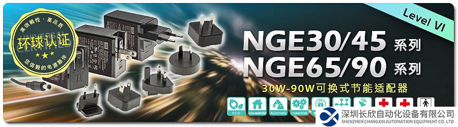 全球标准电源领航者-明纬,继 12W/18W 次世代插墙式可换 AC 插头节能适配器 NGE12/18 系列后,我们紧接着新推出了 30W~90W 更高瓦数的 NGE 30 / 45 / 65 / 90 系列。自此,明纬已可提供 12W / 18W / 30W / 45W / 65W / 90W 各种完整瓦数供选用,堪称是目前市面上插墙式适配器最齐全的产品线,可充份满足各种电子装置或仪器设备搭配使用。