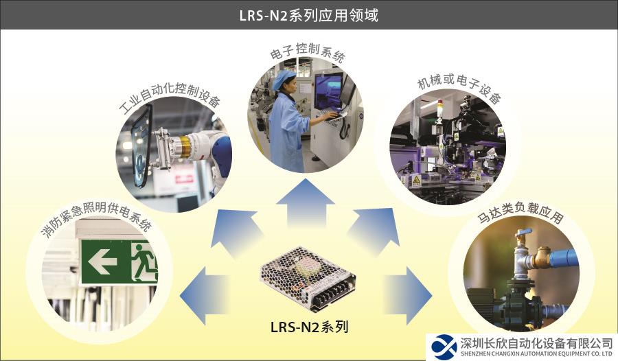 机壳型为明纬主要产品线之一,明纬也持续开发新产品以提供更多标准电源来服务全球客户及各种产业应用。本次新上市的 LRS-100/200/350/600 N2 产品,与旧款 LRS 系列最大的差异在于增加可达 5 秒 200% 瞬间峰值功率的设计;减少客户搭配各种瞬间大电流启动应用问题,客户不需购买较高瓦数来使用,而是可搭配正常功率结合有瞬间峰值功率的电源来使用,降低电源采购成本及协助客户改善应用问题。同时输出电压也提供以工业设备常用电压 12V/24V/36V/48V 等机型为主,其余机构尺寸则与旧款 LRS 系列均相同,方便客户做替换使用。