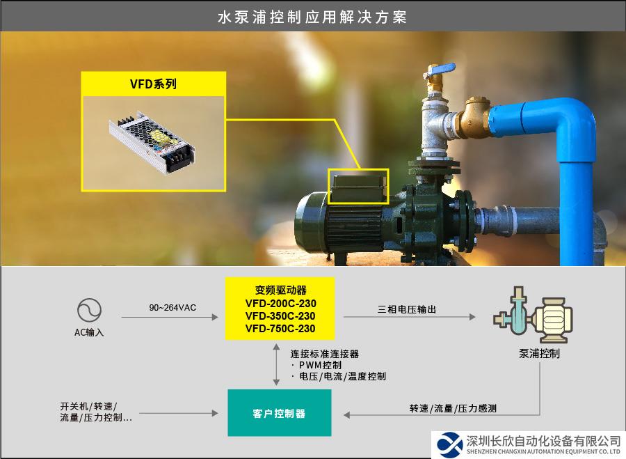 SDG集团暨全球标准电源领航者—明纬,历经3年的市场产业调查与科技创新发展趋势,特别规划推出全新产品线:「VFD系列:工业用直流无刷马达变频控制驱动器」。本家族共8个机型,涵盖了 DC、AC 两种输入电压及 PCB 基板型、灌半胶机壳两种型式;内建 PFC (仅 AC 输入机种) 150~750W 并配备标准控制与传感器讯号,可搭配外部控制小卡进行马达转速及煞停设定与编程。