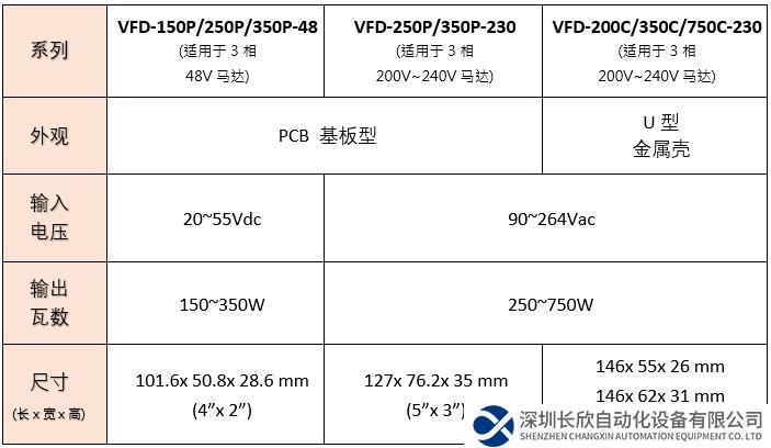 - VFD 系列:150W~750W 工业用