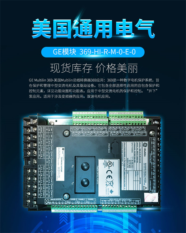 GE 369-HI-R-M-0-0-0-0 继电器模块是一款通用电气多线369系列的一部分,适用于中型交流电机的保护和控制系统。以下是该产品的主要特点: