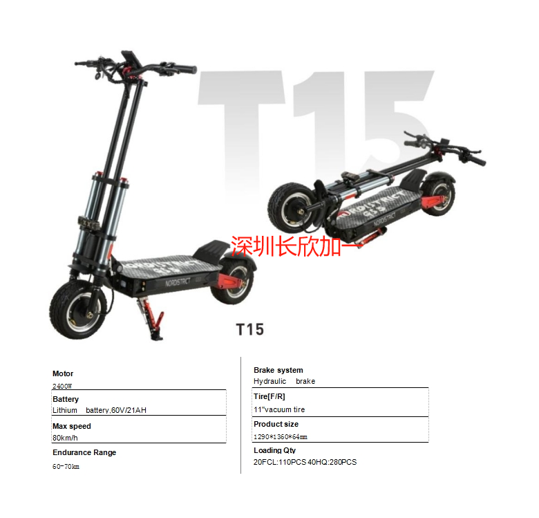 电动滑板车T15两轮两驱便携式工作和休闲滑板车
